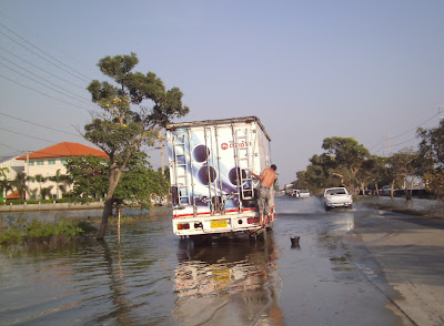 the elevated freeways for safe keeping from the still-abundant flooding. Don Meuang airport was submerged in the flood