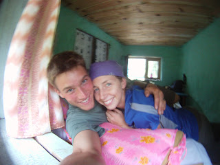 The hotel was cleverly constructed of timber framing, and river rock siding stacked like bricks and packed with clay-filled mud. Our tiny room of two single beds and a nightstand proved difficult for Justin to stand up. He hunched over while inside and we were constantly smacking our heads on the doorway hardly tall enough for a hobbit to walk through. After a quick meal, we retired to our room. We brushed our teeth with bottled water, and spit off the deck onto to the earth below. We thought back over the day’s trek: the breathtaking scenery, the men putting our packs to shame by carrying baskets on their backs the size of a mini-coupes, the monsoon still pouring down outside, and the fact that even in the middle of nowhere we could still purchase a coke, a snickers, or a bag of lays. We took note of the people, and the foreign customs that they displayed. The men would hold hands, or affectionately place their arms around one another while walking under an umbrella, but you wouldn’t see a man and a woman touch for any reason. They would clear their throats noisily, and without reservation spit on the floor. Whether they were inside or out – it didn’t matter. They publically picked their noses, talked very loudly on their cell phones (yes, cell phones – in the big city, on the trail, or in a tiny village in the middle of nowhere, from the richest and the poorest - they all had cell phones), and smoked in the kitchen, restaurants and anywhere else they pleased, likely without the slightest inkling that this was not only intolerable but illegal in our country. Nepal possessed an air more wild and 'uncivilized' than we were accustom to, and we tried to remain unbiased as we eagerly took metal notes of all our differences. Exhausted from our day, we quickly fell asleep tucked away in our sleeping bags, on our tiny beds with their thin foam mattresses covered in a thread-bare sheet that had probably never been washed.