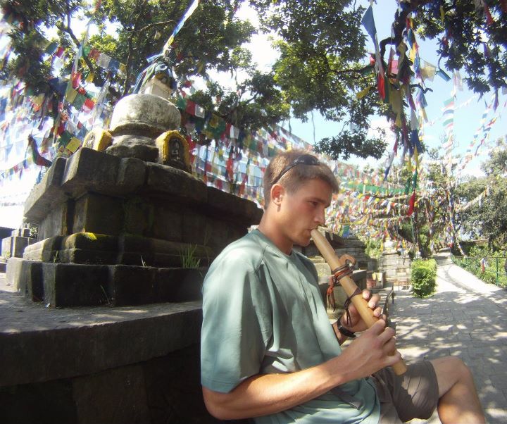 Everywhere we went eyes widened when they saw the flute, and hearts opened when we played it.  We were careful to always keep it in our sight because we knew it was a coveted possession.  Uniquely Native American, it was made by one of the most renowned flute makers in the Americas.  My parents had bought it for their 17th wedding anniversary along with a Native American drum, and it is a cherished item to all in my family.  From the first time Justin visited my parents' house and took the flute down from its place atop a high shelf, he fell in love with the peaceful melodies it played and the deep emotion it evoked in all within earshot.  Maybe it's because we both have Cherokee blood running through our veins, or perhaps it is just our love for all things peaceful and beautiful, but a supernatural bond seemed to have been formed between us and the flute from that day forth.  My parents passed it on to us as a wedding present, and the tradition of a family heirloom began.  We had grand ideas of playing it atop a mountain in the Langtang Mountain range.