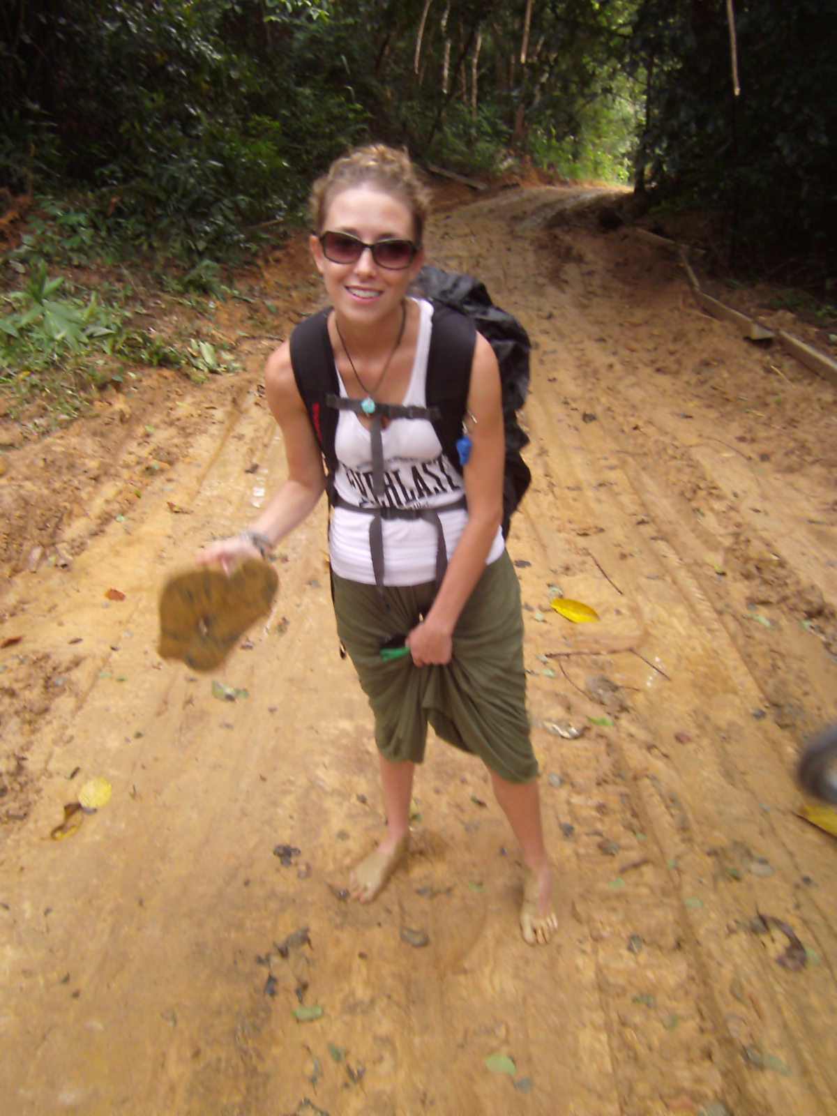 with one hand, my sandals muddied in the other, my glasses crooked on my faces,