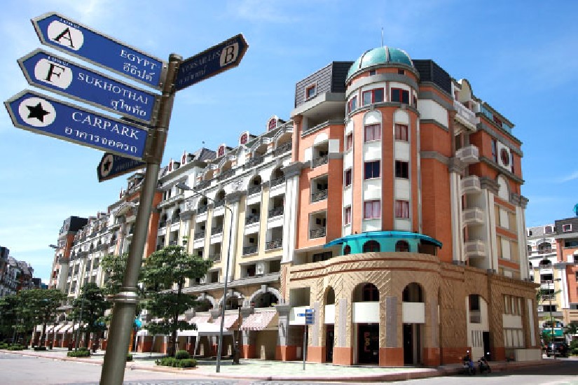 The apartment complex has an exterior design of a Parisian